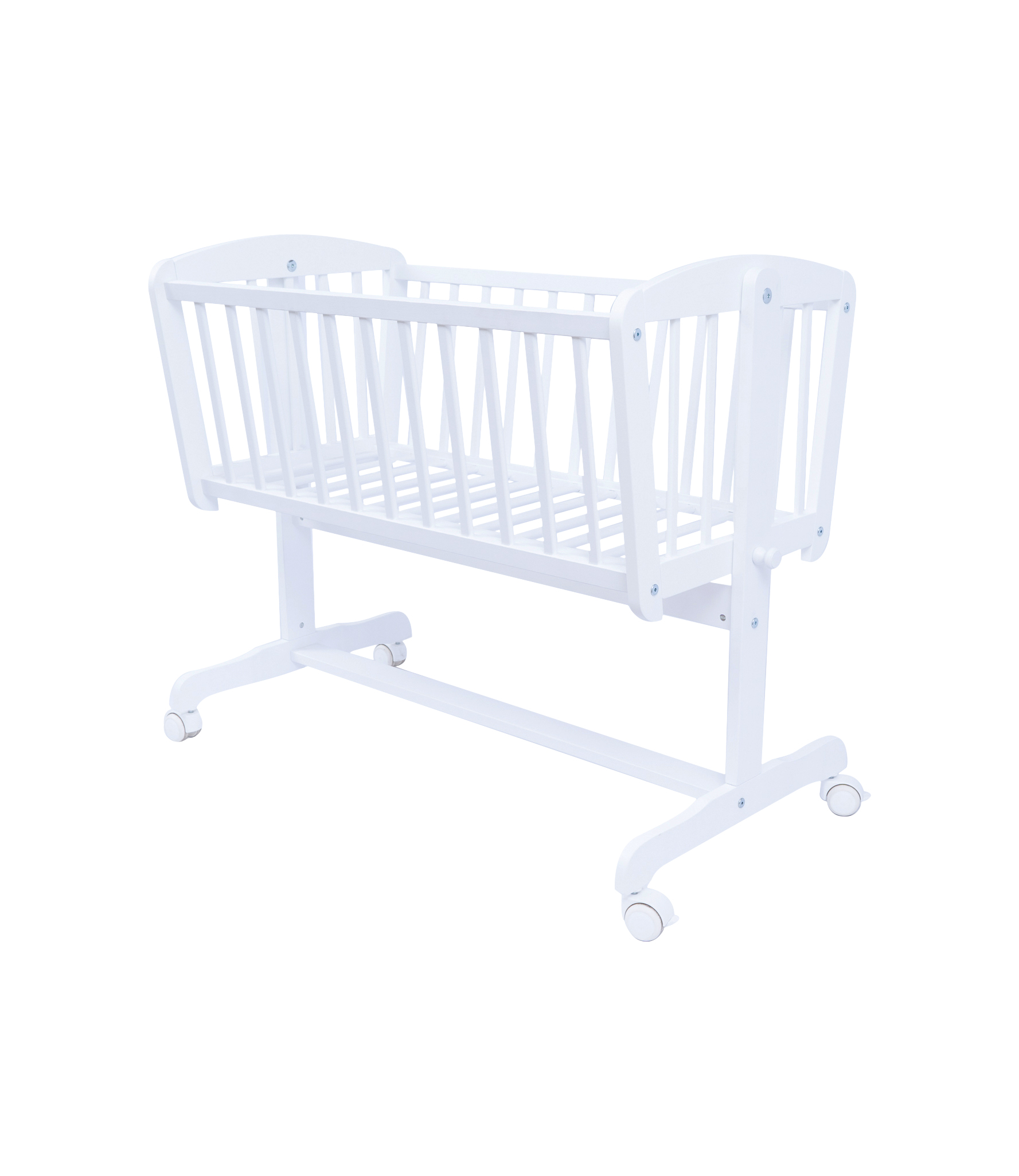 Klasyczny model dla noworodka firmy SKRZAT. Szczyty zostały wykonane ze szczebli sosnowych, dzięki czemu dziecko jest doskonale widoczne. Nasza kołyska jest wyposażona w kołeczka z hamulcem pozwalające na wygodne przemieszczanie. Kołyska sprawdza się idealnie jako pierwsze łóżeczko, które dzięki mechanizmowi kołysania ukoi do snu każdego noworodka.