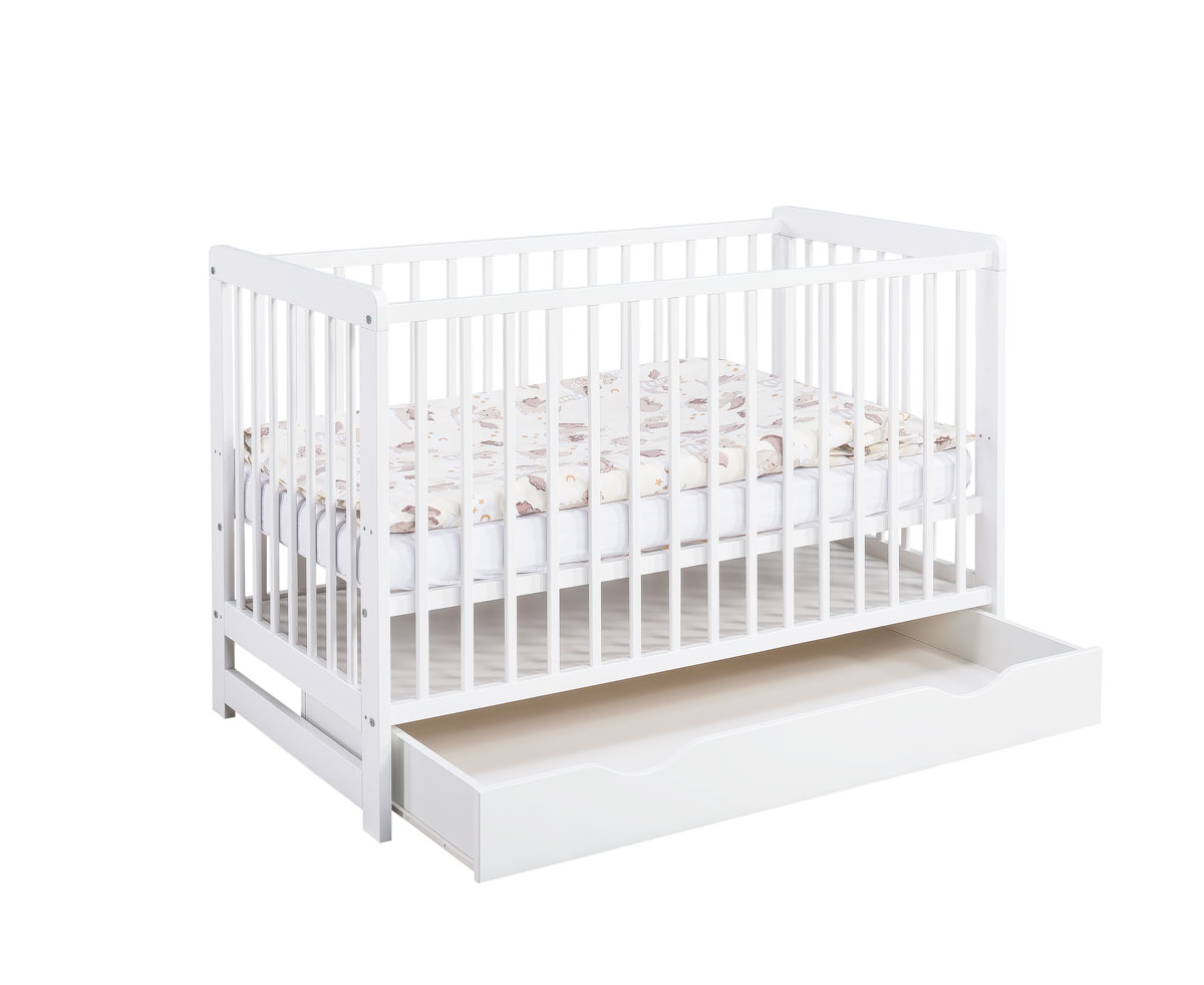 Szuflada z lakierowanego MDF – Szuflady do łóżeczka to praktyczne rozwiązanie, które pozwala na efektywne wykorzystanie przestrzeni pod łóżkiem niemowlęcym. Dzięki nim można z łatwością przechowywać pościel, ubranka czy inne niezbędne akcesoria dla maluszka, zachowując porządek w pokoju. Szuflady są łatwe w obsłudze, estetyczne i funkcjonalne, stanowiąc wygodne rozszerzenie miejsca do spania dziecka. Do łóżeczka z szufladą jest dołączona płyta maskująca wnętrze szuflady montowana powyżej niej w łóżeczku.