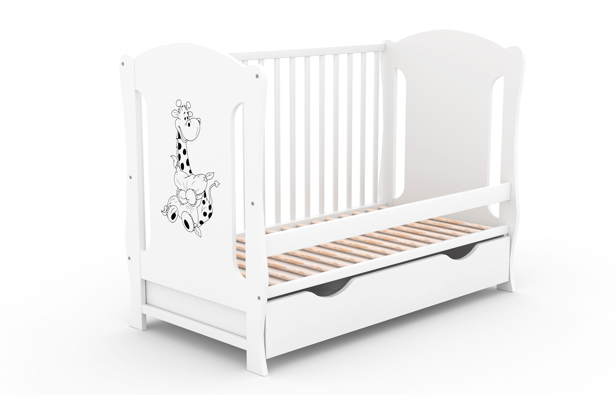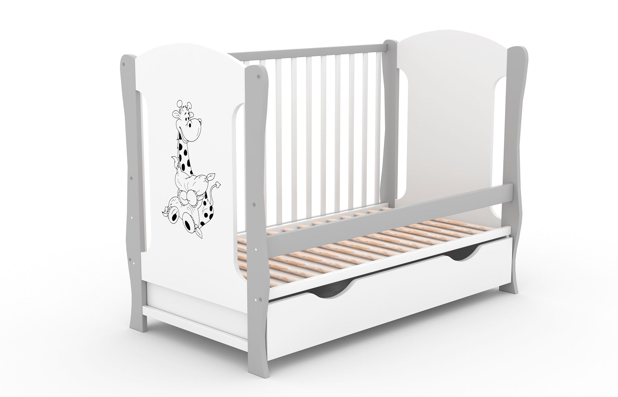 Łóżeczko niemowlęce Zuzia to urocze i solidne miejsce do snu dla maluszka. Wykonane z wysokiej jakości materiałów, prezentuje delikatny design, który doskonale wpasowuje się w różnorodne aranżacje pokoju dziecka. Regulowany stelaż dostosowuje się do potrzeb rosnącego malucha, a opcjonalne szuflady na pościel sprawiają, że łóżeczko Zuzia to funkcjonalne i estetyczne rozwiązanie dla nowoczesnych rodziców. Zuzia posiada trwały malunek żyrafy na obu szczytach w standardzie.